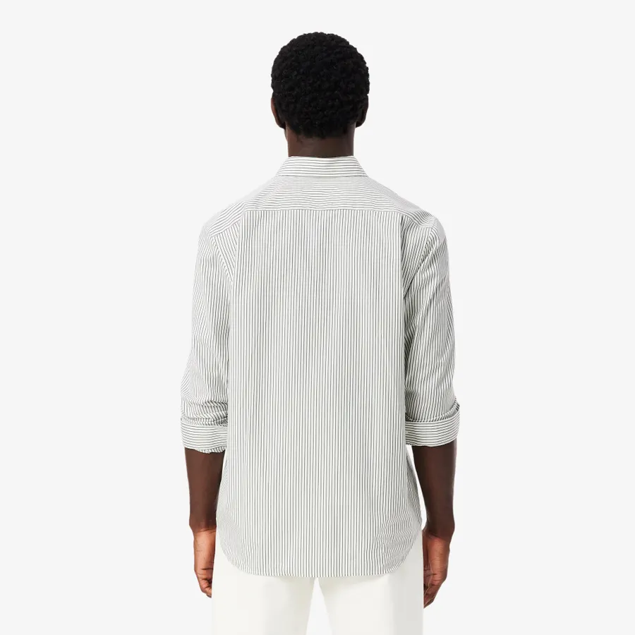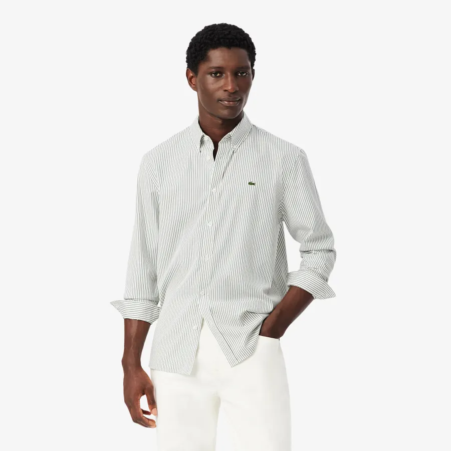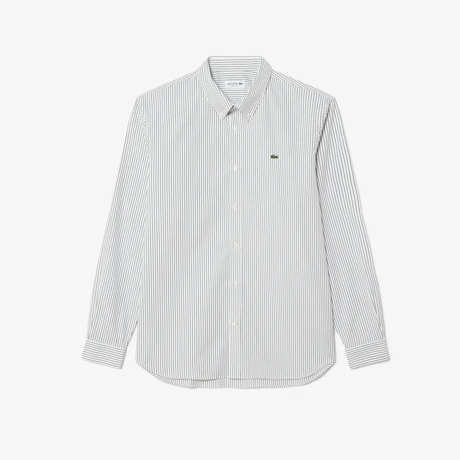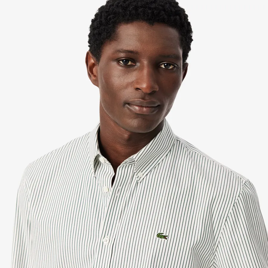 - This essential shirt is a lesson in Lacoste style and elegance. Made from fine textured pinpoint cotton, with a striped design for a relaxed chic look. A timeless piece, finished with a signature embroidered Logo and premium details including mother-of-pearl buttons.